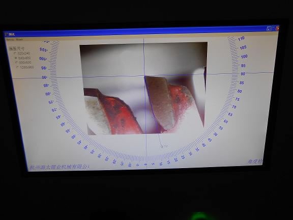 角度检测仪 本机采用微电脑控制,方法简便,实用性高。 1、可以检测锯片前后角度。 2、可放大观察焊接质量。 3、基体开齿角度检测与毛刺大小观察。 4、检测锯片外径齿高。 5、通过放大检测焊接后刀头有无裂痕。 是锯片生产质量检测的好帮手。